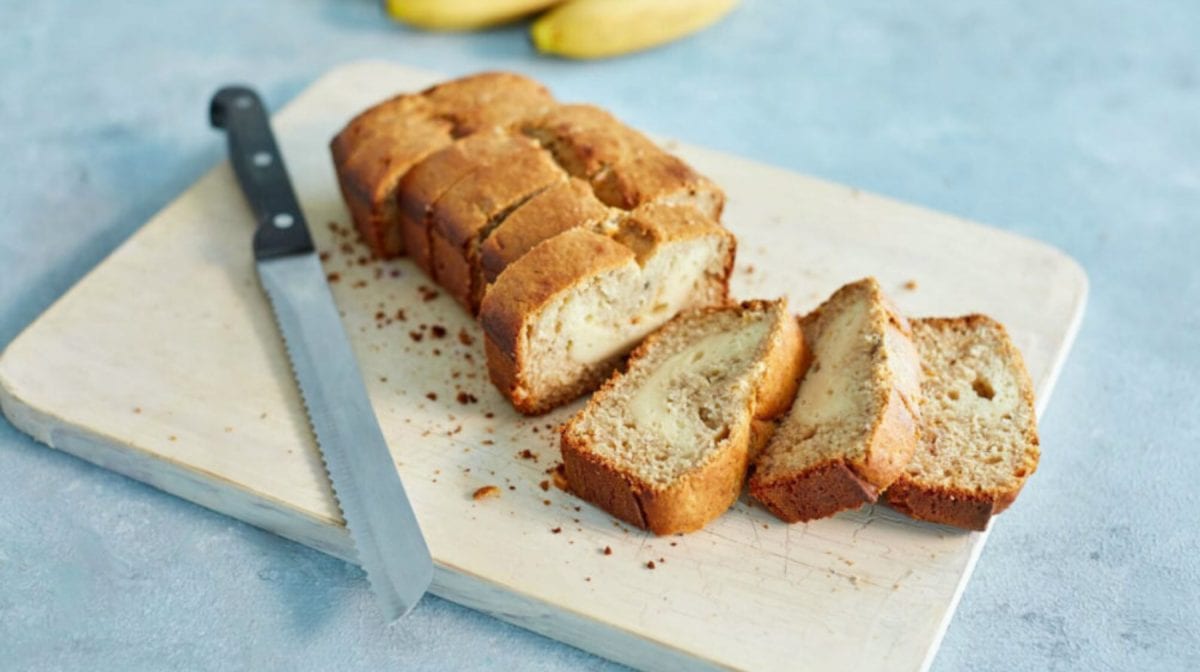 Ten nadziewany sernikiem chleb bananowy stanowi doskonałe, zdrowe śniadanie, posiłek przed treningiem lub po treningu, lub przekąskę, na popołudniowe słodkie pragnienie.