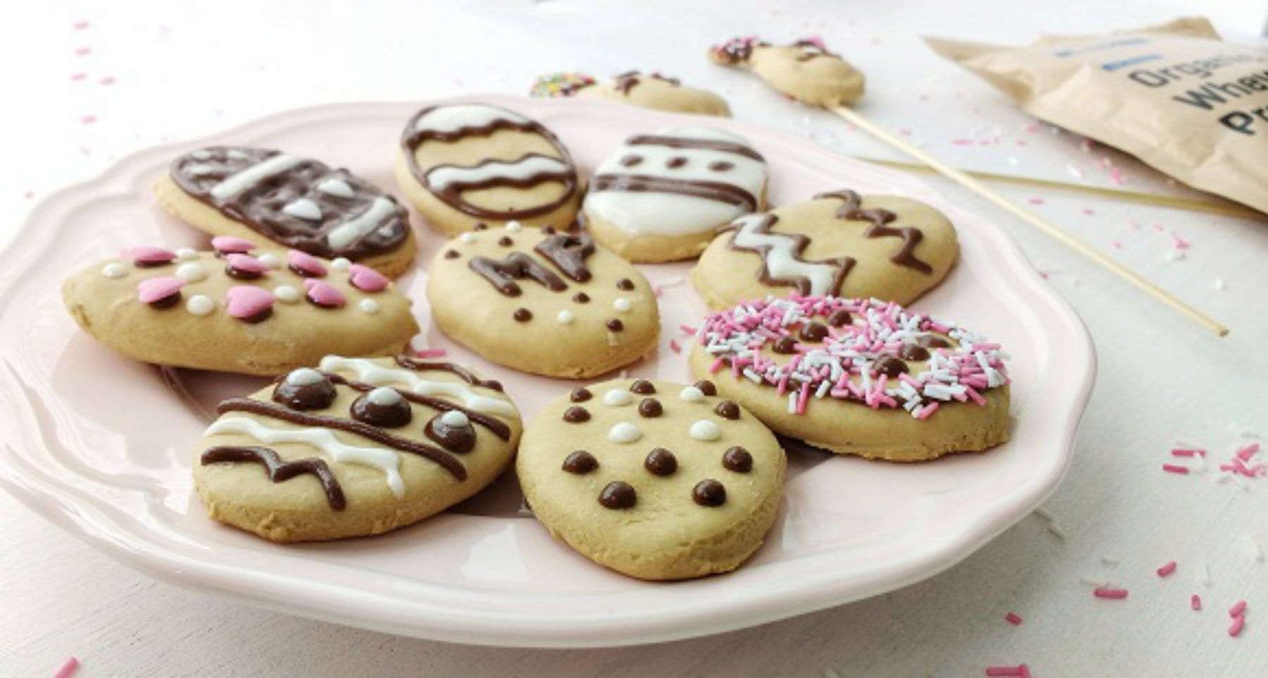 - Umieść ciasteczka na blasze do pieczenia wyłożonej papierem i piecz przez około 20 minut w temperaturze 180ºC.