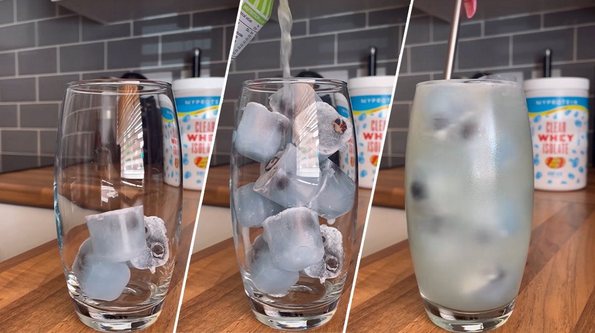 - Dodaj białkowe kostki do szklanki i zalej lemoniadą.