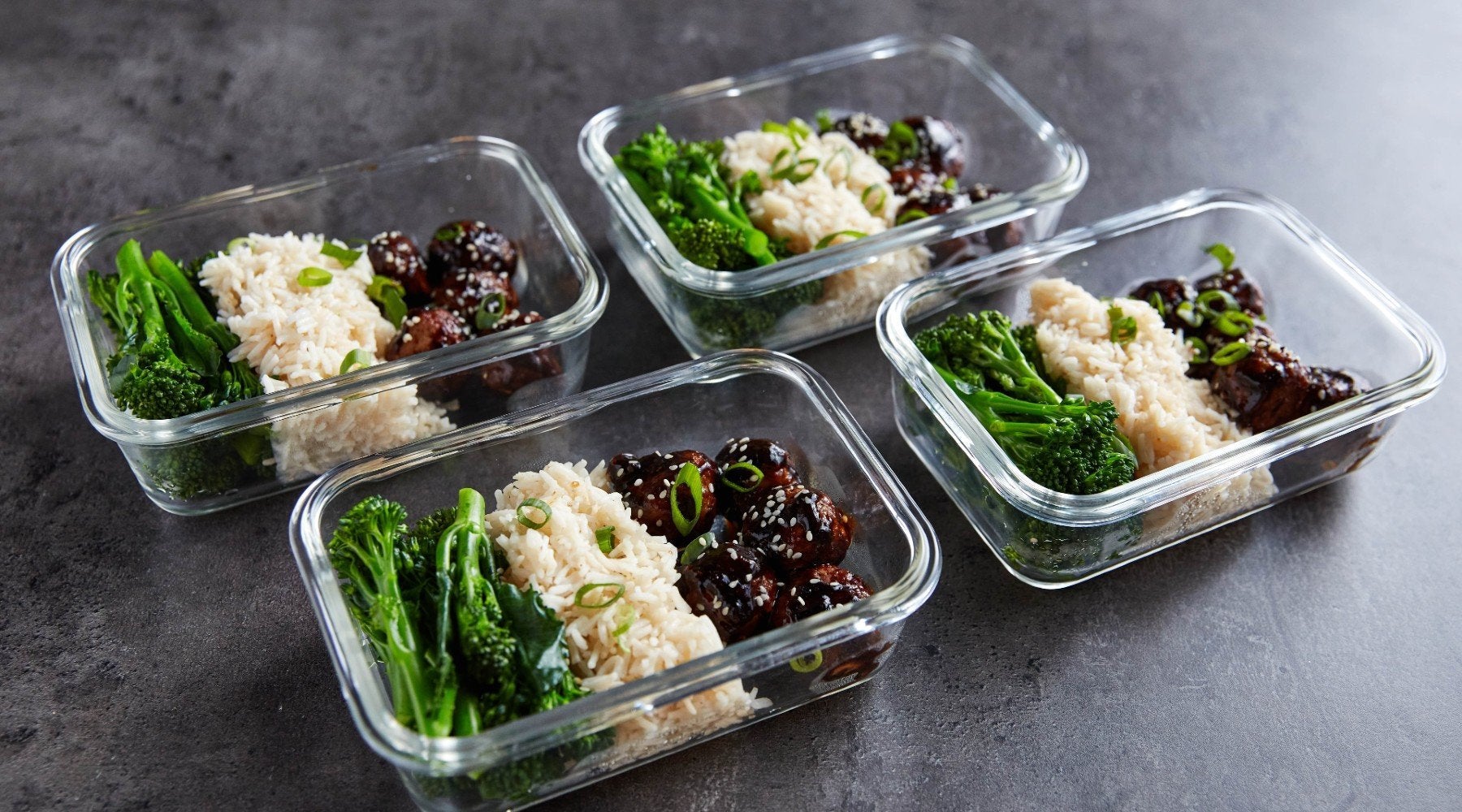 - Przygotuj 4 pudełka do rozdzielenia porcji. Włóż brokuły, ryż i klopsiki. Udekoruj sezamem i szczypiorkiem.