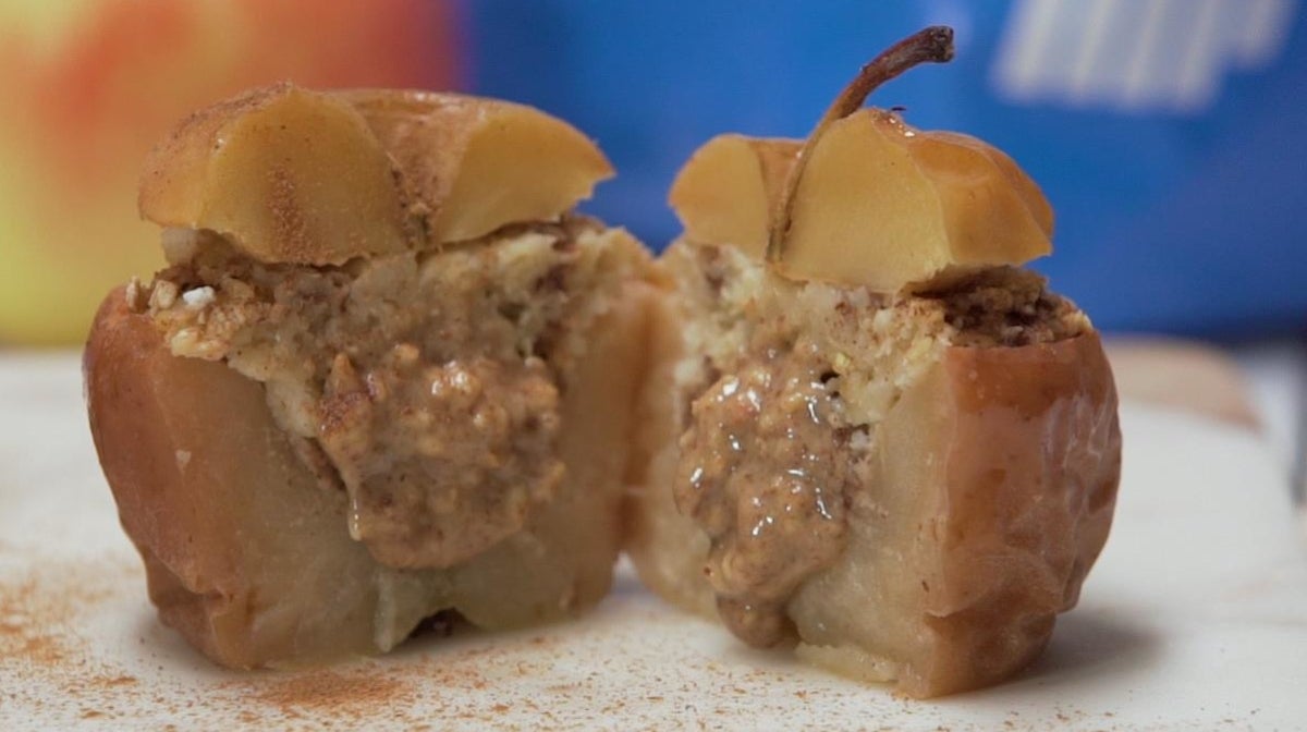 Szukasz inspiracji na zdrowy jesienny deser? Jaki jest lepszy sposób, aby cieszyć się lokalnymi produktami? Odstaw na bok mrożone ciasta i stwórz nadziewane pieczone jabłka, wypełnione chrupiącym masłem orzechowym, cynamonem i owsem! Możesz nam podziękować później.