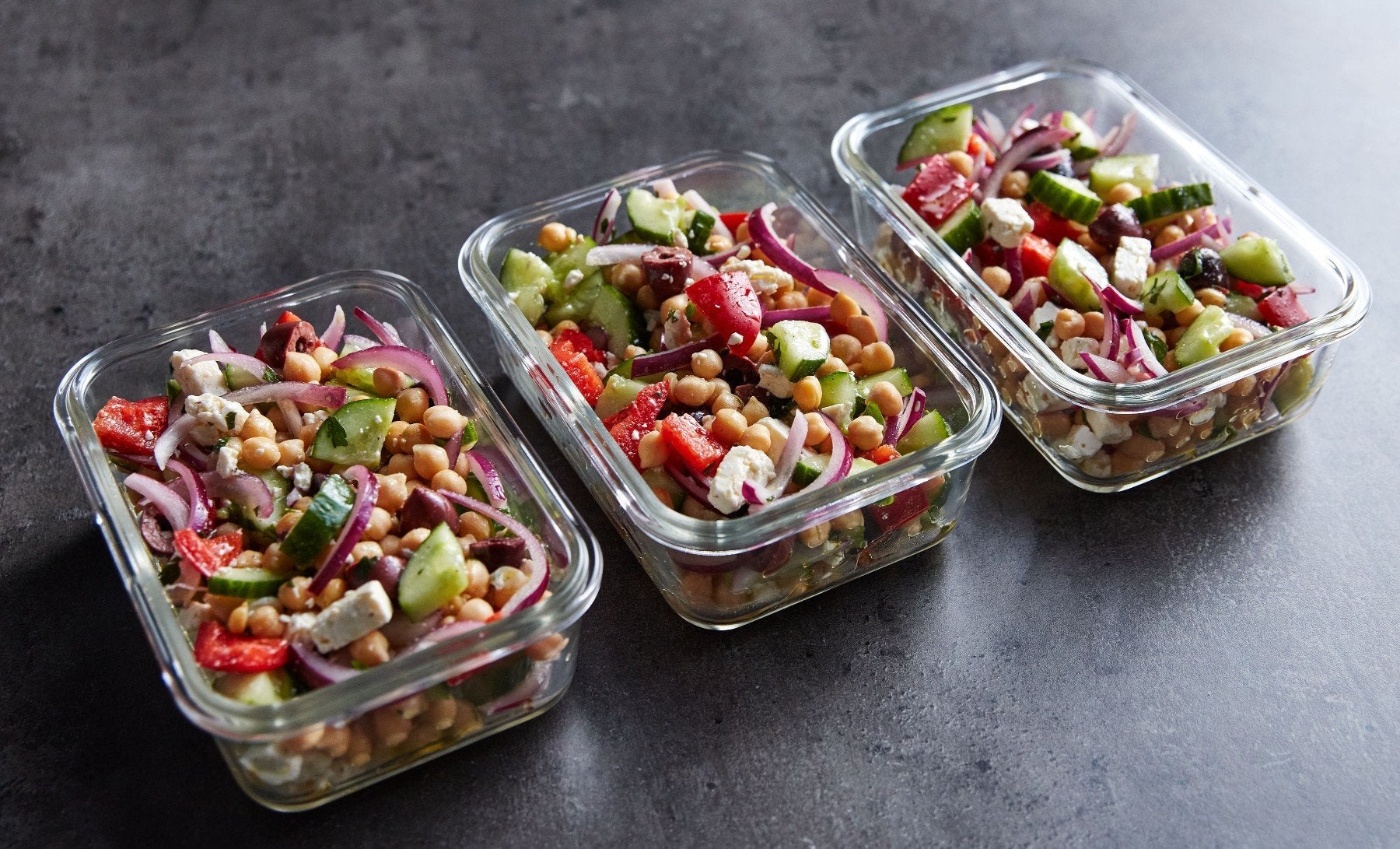 - W dużej misce dodaj odsączoną ciecierzycę, posiekanego ogórka, czerwoną paprykę, czerwoną cebulę, połówki oliwek i pokruszoną fetę. Zalej wszystkie składniki dressingiem, a następnie dokładnie wymieszaj, aby równomiernie się połączyły. I to już! Podawaj natychmiast lub poporcjuj do pojemników, aby przygotować kilka posiłków.