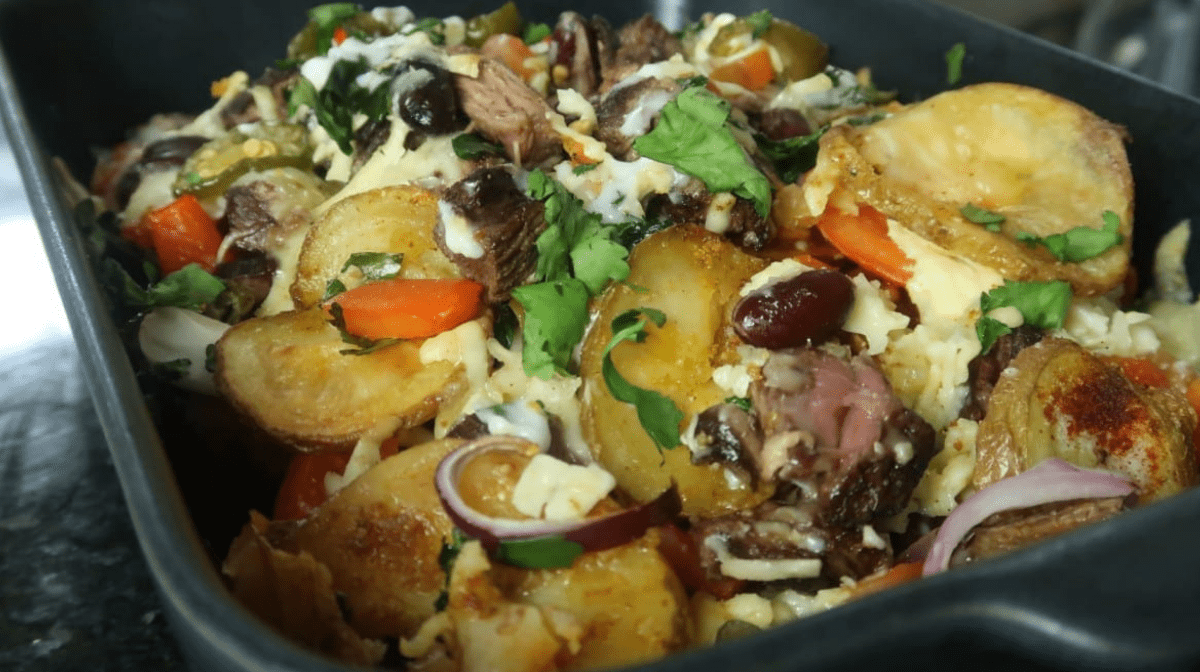 Super Serowa Zapiekanka ze Stekiem i Talarkami Ziemniaczanymi